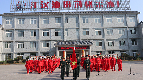 公司与江汉油田荆州采油厂共同举行升国旗仪式